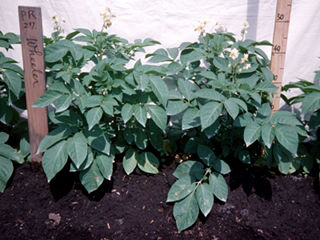 PVY-Oによる病徴はえそ型、PVY-T接種による第1次病徴は接種葉、全身とも無病徴ですが、第2次病徴による病徴は極軽いれん葉ないしモザイク症状を現し、さらに極軽い葉の裏の脈えそを現しますが、いずれの病徴も不安定です。PVAには感受性で、本品種はわが国でPVAの発生が初めて確認された品種でした。PVX-oには感受性ですが、PVX-bには抵抗性です。PVSにも抵抗性です。PLRVによる葉巻病の接種後の病徴は、上葉が退緑して巻き上がり、やがて中葉以上の葉が退緑して巻き上がりますが、植物はあまり直立性となりません。